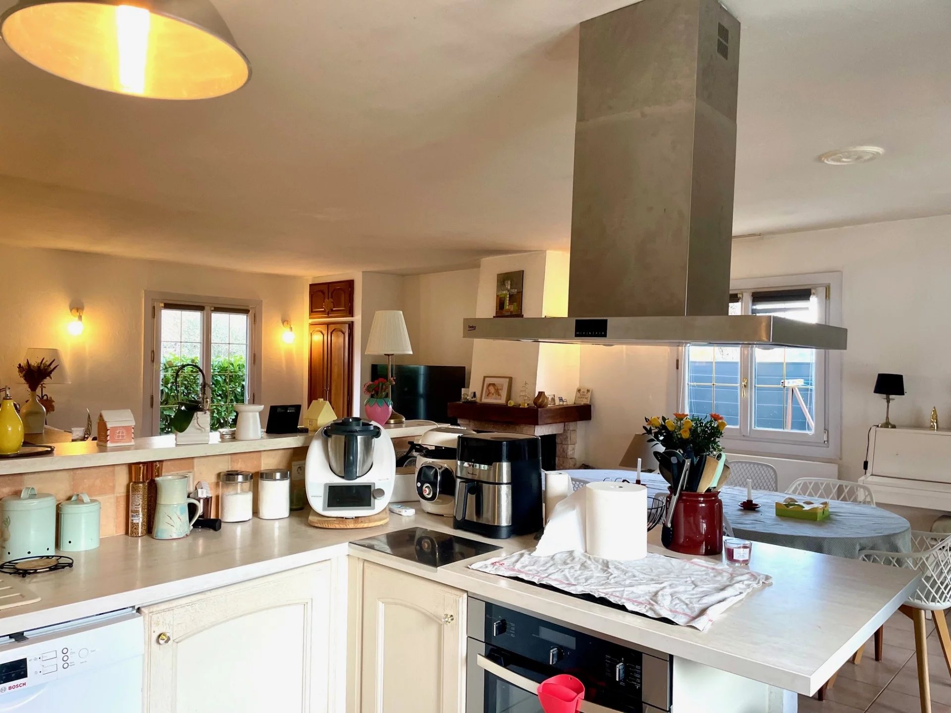 Cheminée • Double vitrage • Panneaux solaires • Volets roulants électriques • Barbecue • Clôture