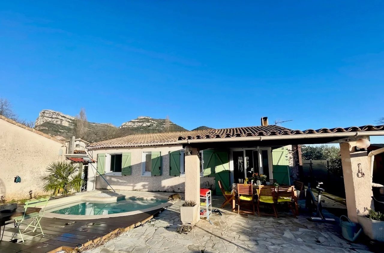 • Dans un petit hameau proche du village, charmante maison de 90 m2 type 4 pièces composée d'un beau séjour avec cheminée et cuisine ouverte, 3 chambres, une salle d'eau avec wc, wc indépendant. Terrain de 400 m2 plat en deux planches avec petite piscine SPA de nage à contre courant chauffée, Cave/atelier. Très calme et ensoleillée toute la journée. Belles vues campagnes, Baou et Château. Maison très bien isolée et économique. Panneaux solaires.