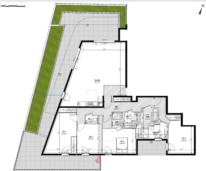 - 4 Chambres (16 m², 16 m², 15 m², 12 m²)