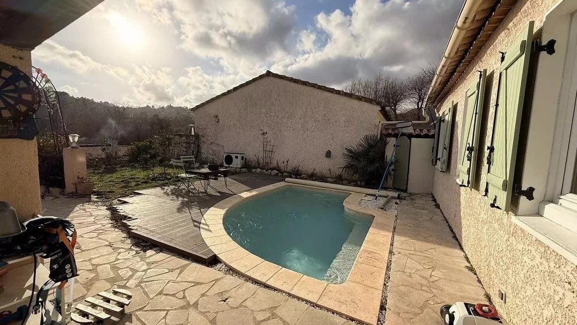 • Dans un petit hameau proche du village, charmante maison de 90 m2 type 4 pièces composée d'un beau séjour avec cheminée et cuisine ouverte, 3 chambres, une salle d'eau avec wc, wc indépendant. Terrain de 400 m2 plat en deux planches avec petite piscine SPA de nage à contre courant chauffée, Cave/atelier. Très calme et ensoleillée toute la journée. Belles vues campagnes, Baou et Château. Maison très bien isolée et économique. Panneaux solaires.